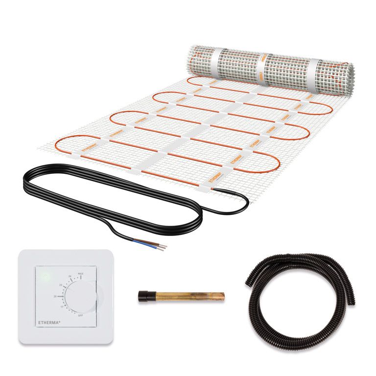De netverwarmingsmat van Etherma kan toegepast worden op diverse plekken in uw woonhuis, vakantiehuis of buitenverblijf. Doordat er bij deze mat gebruik is gemaakt van een speciale constructie, kunt u de elektrische vloerverwarming toepassen onder bijvoorbeeld tegels of steen. De constructie zorgt er ook voor dat de installatie vrij eenvoudig is. De verwarmingsmat wordt daarnaast ook nog geleverd met een inbouw thermostaat eBasic.